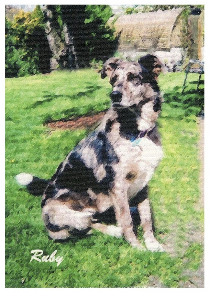 Ruby came out of a dismal county animal shelter in Washington State. We were looking for a friendly, but loyal and always- on- alert type watchdog. She was sitting quietly in a corner, and somehow, I missed her on the first walk-through. Her file said she had been picked up as a stray hanging around a farm field. When we first got her she clearly had never ridden in a vehicle before and at home was reluctant to leave the garage at first. As I write this, eleven years later, she is asleep on her customary spot on the couch with one eye slightly open and one ear perked for the sound of possible trouble or maybe the evening feeding.