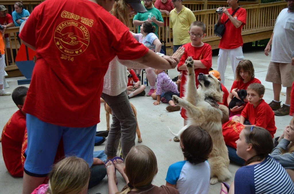 In short, we took ten ICHBA dogs, including seven six-week-old puppies and three older dogs, Meadow, Pippi, and Tori, to Camp T.A.G.to entertain and comfort kids who had recently lost loved ones in every way imaginable, from tragic car accidents to drug overdoses.