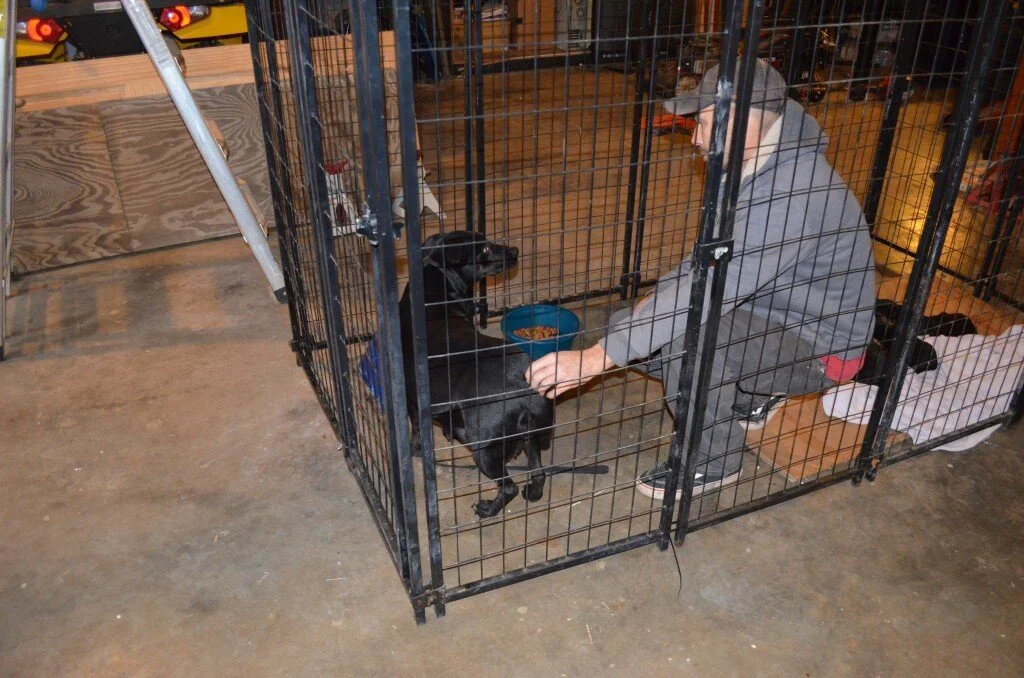 Dawn – a feral dog we caught after seven months and nineteen puppies – went from roaming free for years to being locked up in our basement; I can’t imagine it’s an easy adjustment. She lives inside a 4’ by 8’ pen. A makeshift-plywood wall splits the basement in half, barricading any escape and keeping the pack away.