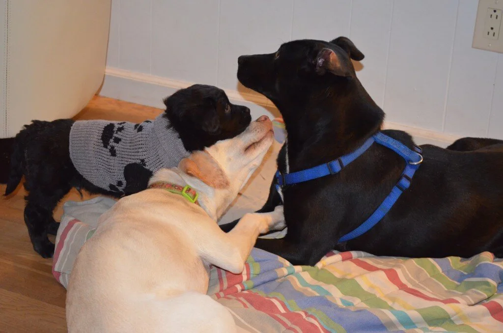 But, Dawn hasn’t exhibited an ounce of aggression. She hasn’t tried to bite any of us, human or dog. She’ll growl or whine once in a while – when we cross some unknown boundary – but she hasn’t snapped or barked, and the rest of the pack haven’t challenged her warnings either.