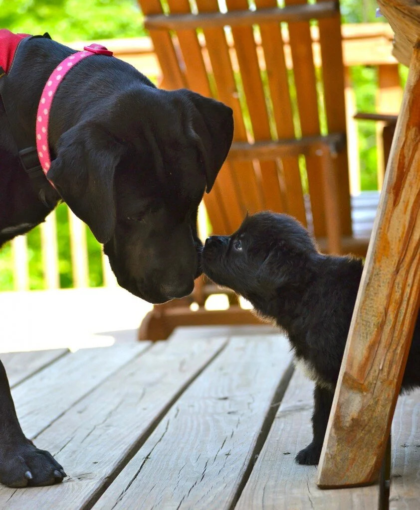 But after a month of living with her, I’ve come to adore her and completely understand people’s preference for the Labrador breed. It was Thelma’s keen intelligence and loving personality that sold me. When she’s not playing with her buddies, Silvio and Meadow, she watches me with dark soulful eyes gleaning with appreciation, and she treats the foster puppies that come and go with an endearing maternal affection. As far as intelligence, at night, I only have to say, “crate” or point to her special digs, and she nudges open the cage door, steps inside, spins a few times, and adjusts her blanket before nestling down for a night of sleep.